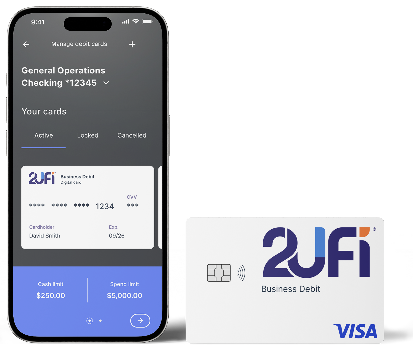 The 2UFi VISA® Business Debit Card is issued by the Bank of Jackson Hole Trust pursuant to a license from VISA U.S.A., Inc.