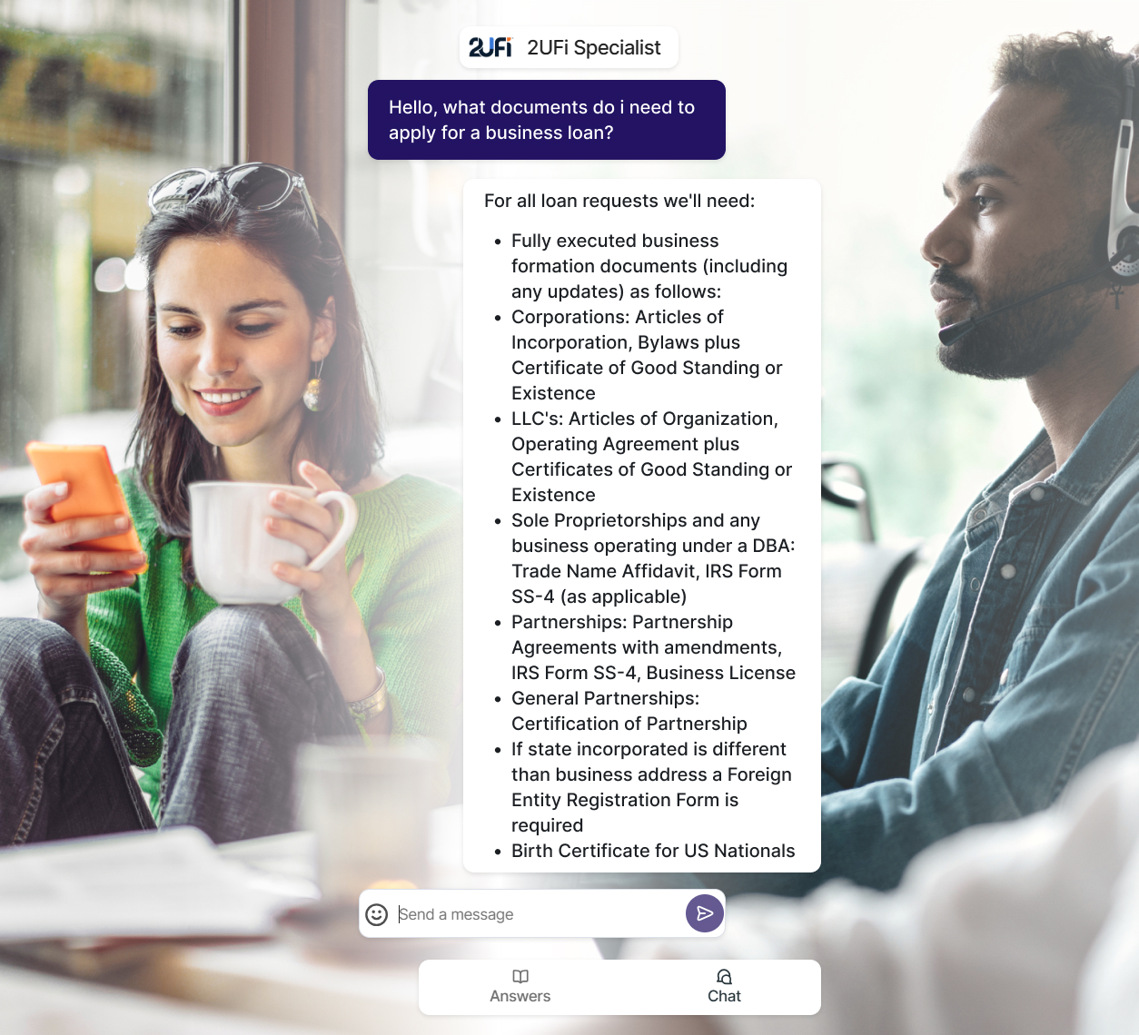2UniFi, LLC, is a financial technology company, not a FDIC-insured bank. Banking and lending products and services are provided by Bank of Jackson Hole Trust, Member FDIC. Deposit insurance covers the failure of an insured bank.